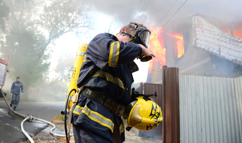 Nhân viên cứu hỏa nỗ lực dập đám cháy tại ngôi nhà bị trúng tên lửa ở quận phía tây bắc thành phố Donetsk. Ảnh: AFP/TTXVN